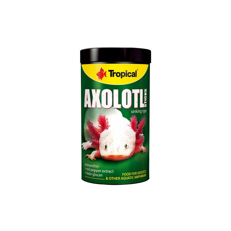 O Axolotl Sticks da Tropical é um alimento projetado para axolotes e outros anfíbios aquáticos, como salamandras e sapos. Com o formato em bastões afundáveis esta ração é rica em proteínas de alta qualidade, adequada para os que se alimentam predominantemente de organismos animais.